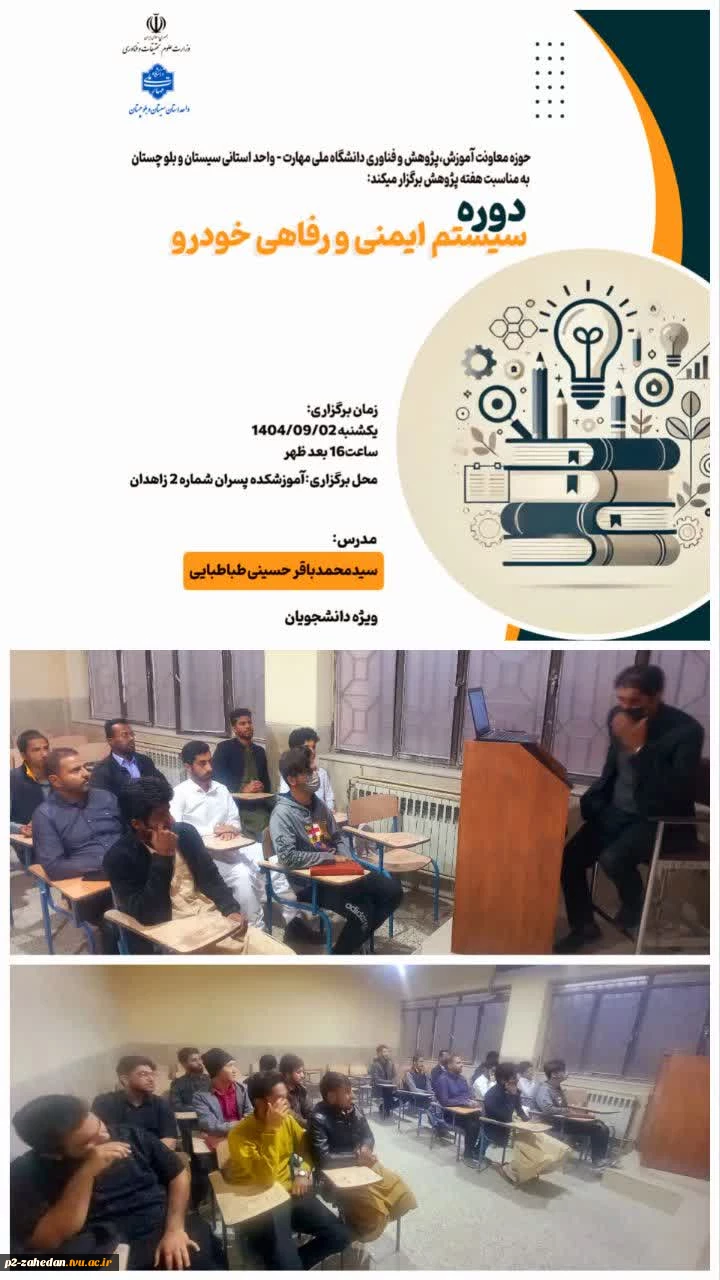 برگزاری دوره آموزشی سیستم های ایمنی ورفاهی خودرو ویژه دانشجویان رشته مکانیک خودرو درآموزشکده شماره دو پسران شهید عارفی زاهدان  2