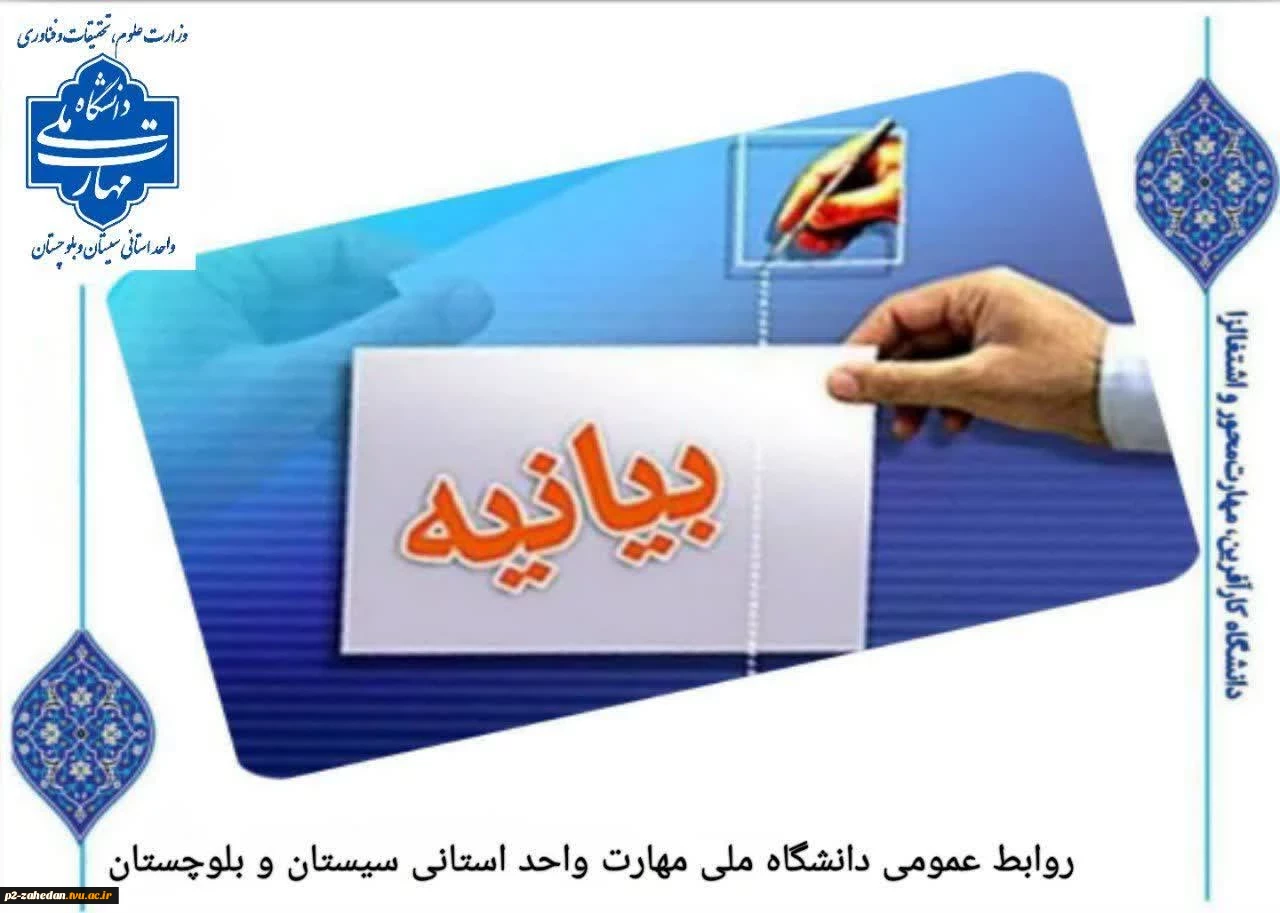 بیانیه دانشگاه ملی مهارت واحد استان سیستان وبلوچستان 2